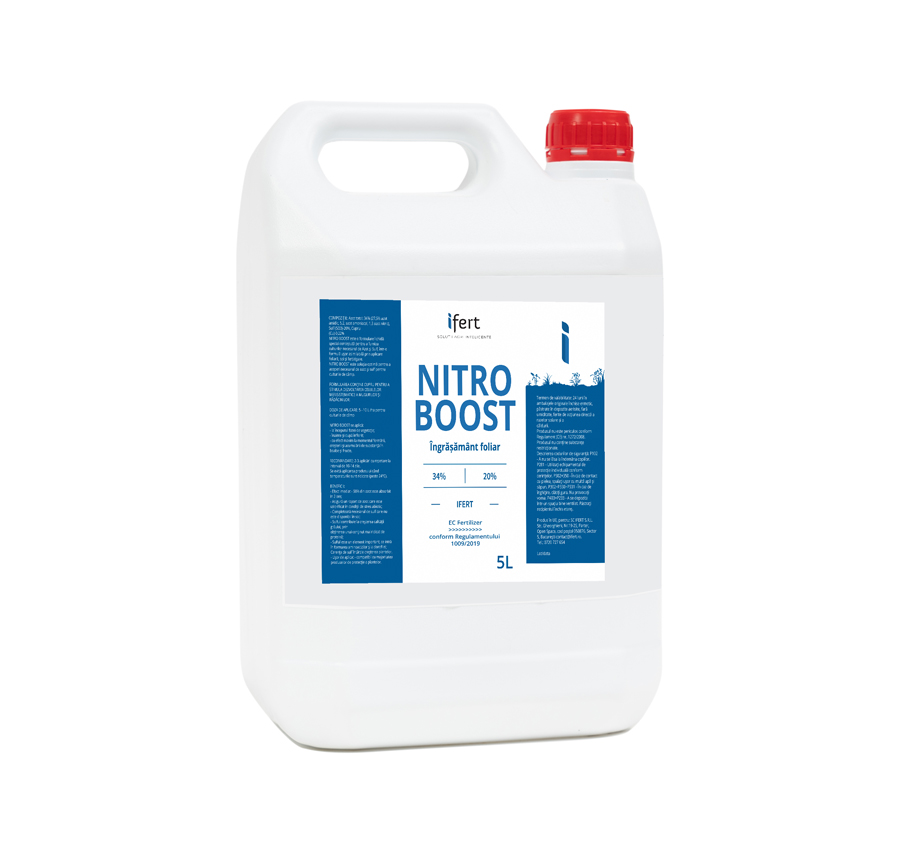 NITRO BOOST este soluţia optimă pentru a acoperi necesarul de azot şi sulf pentru culturile de câmp.FORMULAREA CONŢINE CUPRU PENTRU A STIMULA DEZVOLTAREA CELULELOR MERISISTEMATICE A MUGURILOR ȘI RĂDĂCINILOR.DOZA DE APLICARE: 5 – 10 L /ha pentru culturile de câmp